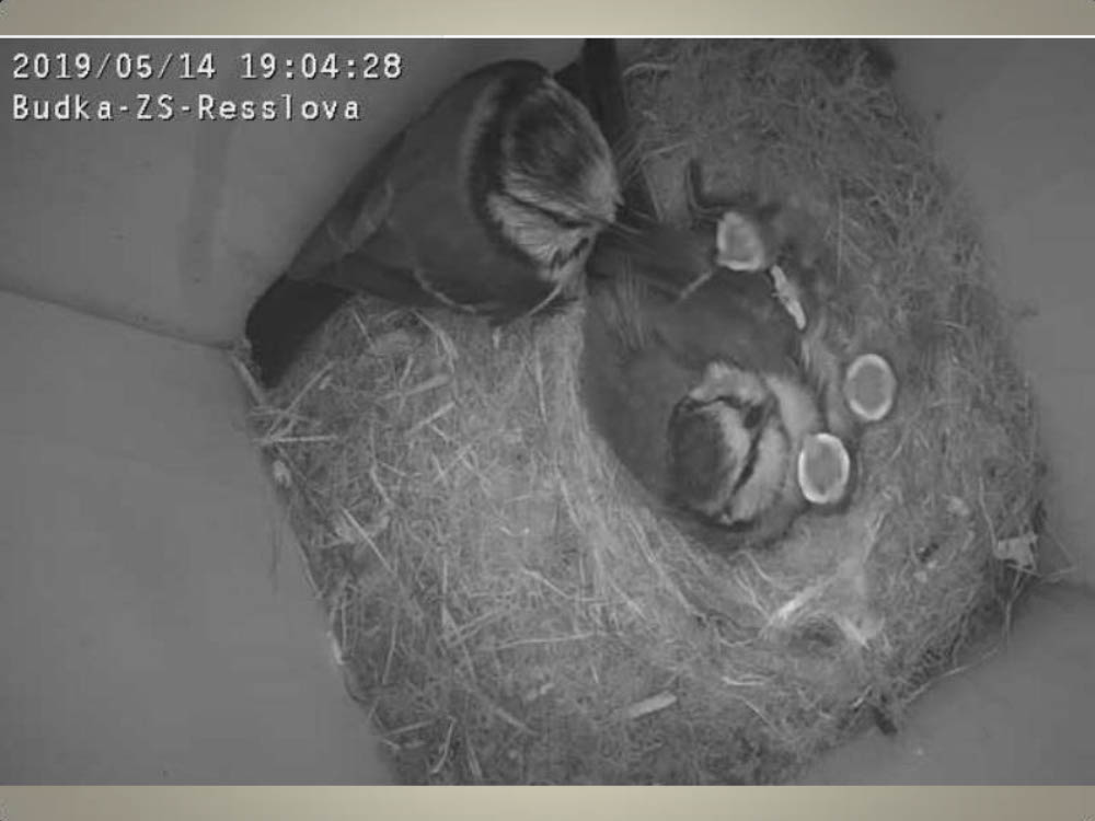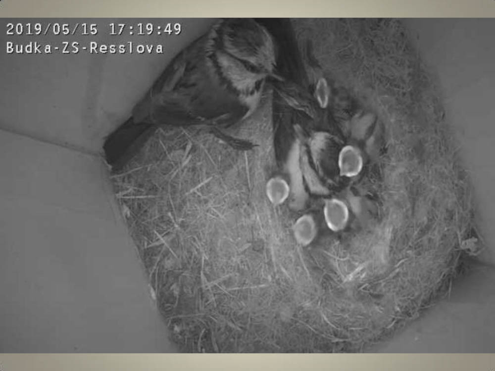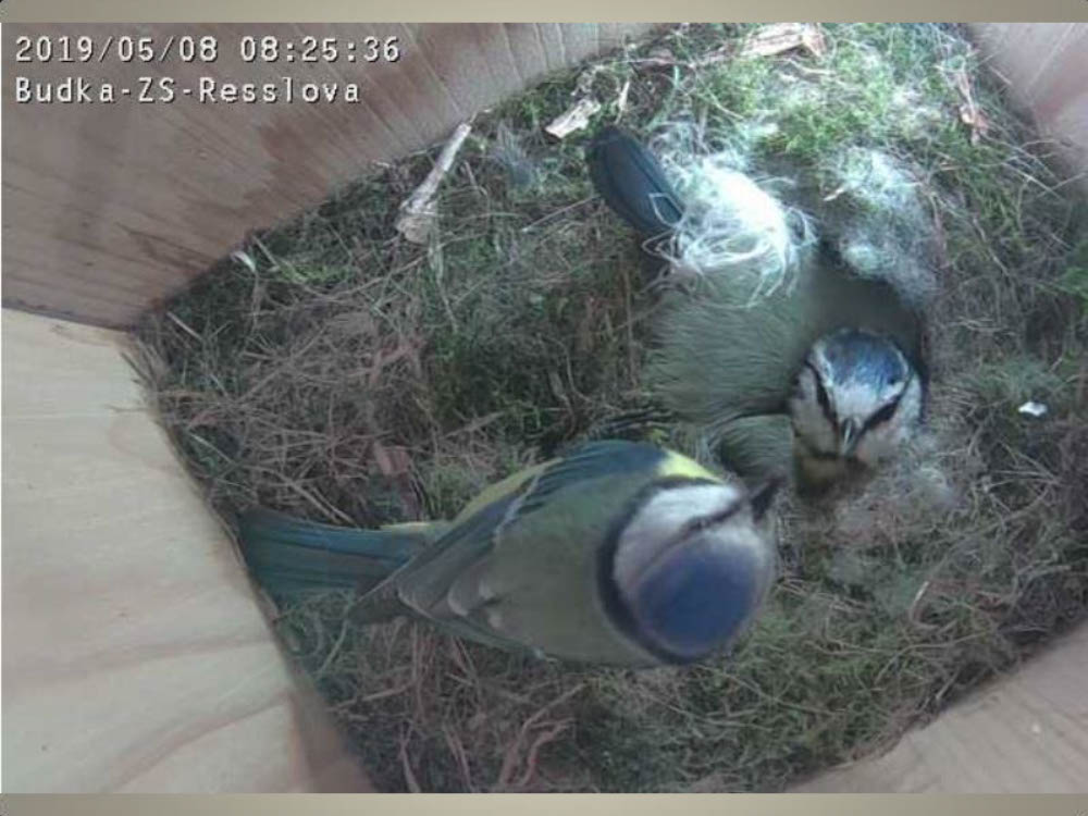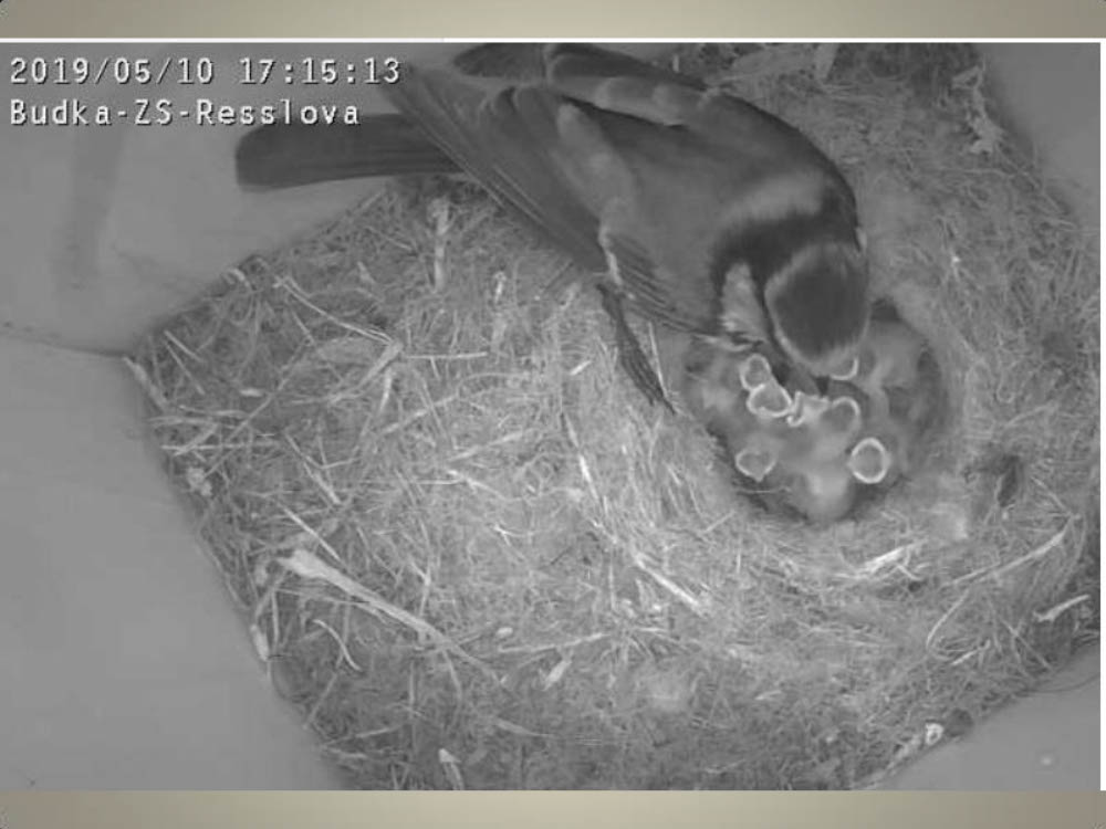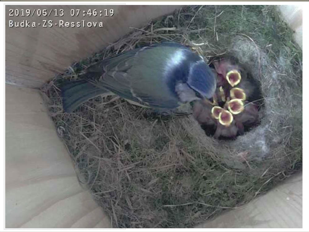 Aktuální dění v naší ptačí budce snímaný naší webkamerou.