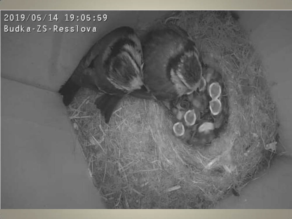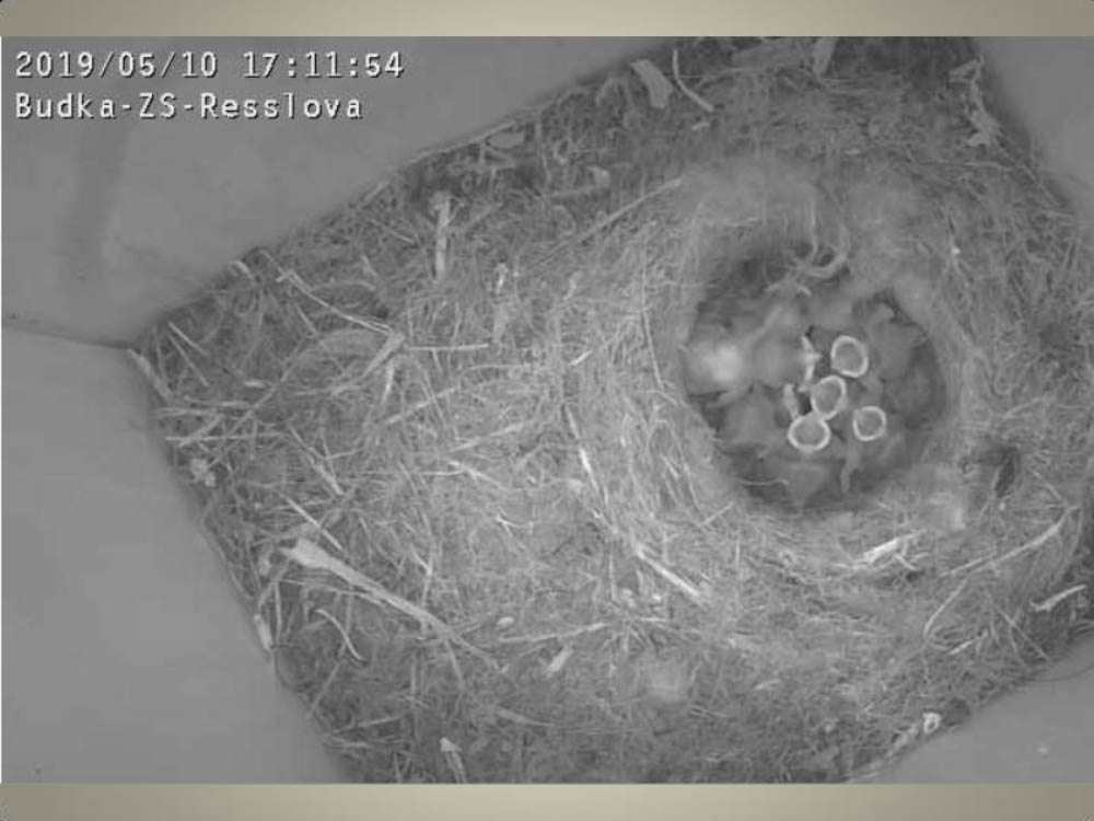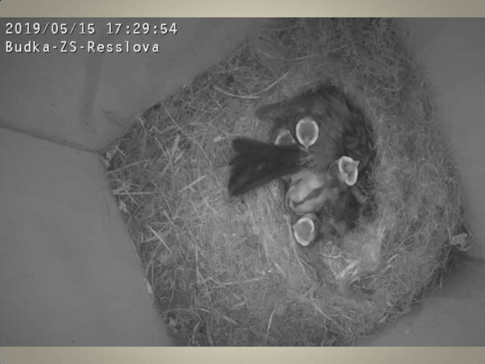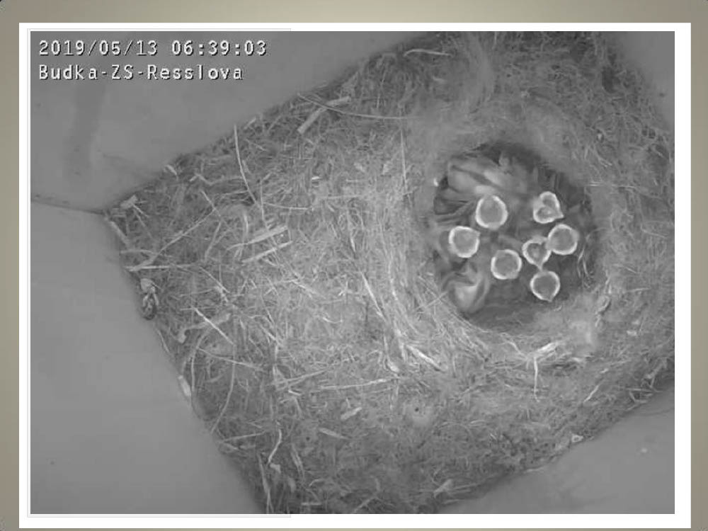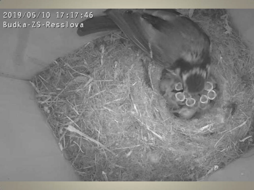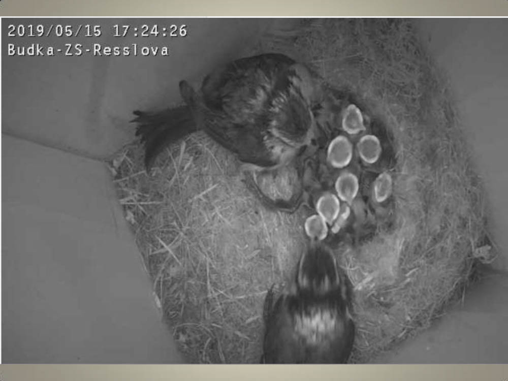 Aktuální dění v naší ptačí budce snímaný naší webkamerou.